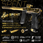 Each Spent Series MXR marker features its signature Spent PGA design and comes equipped with exclusive, precision-machined Spent Series parts — including the 9mm Bolt Button, 6 Shooter Feedneck Knob, and .223 Feedneck Lever — giving each setup a distinctive and elevated finish.