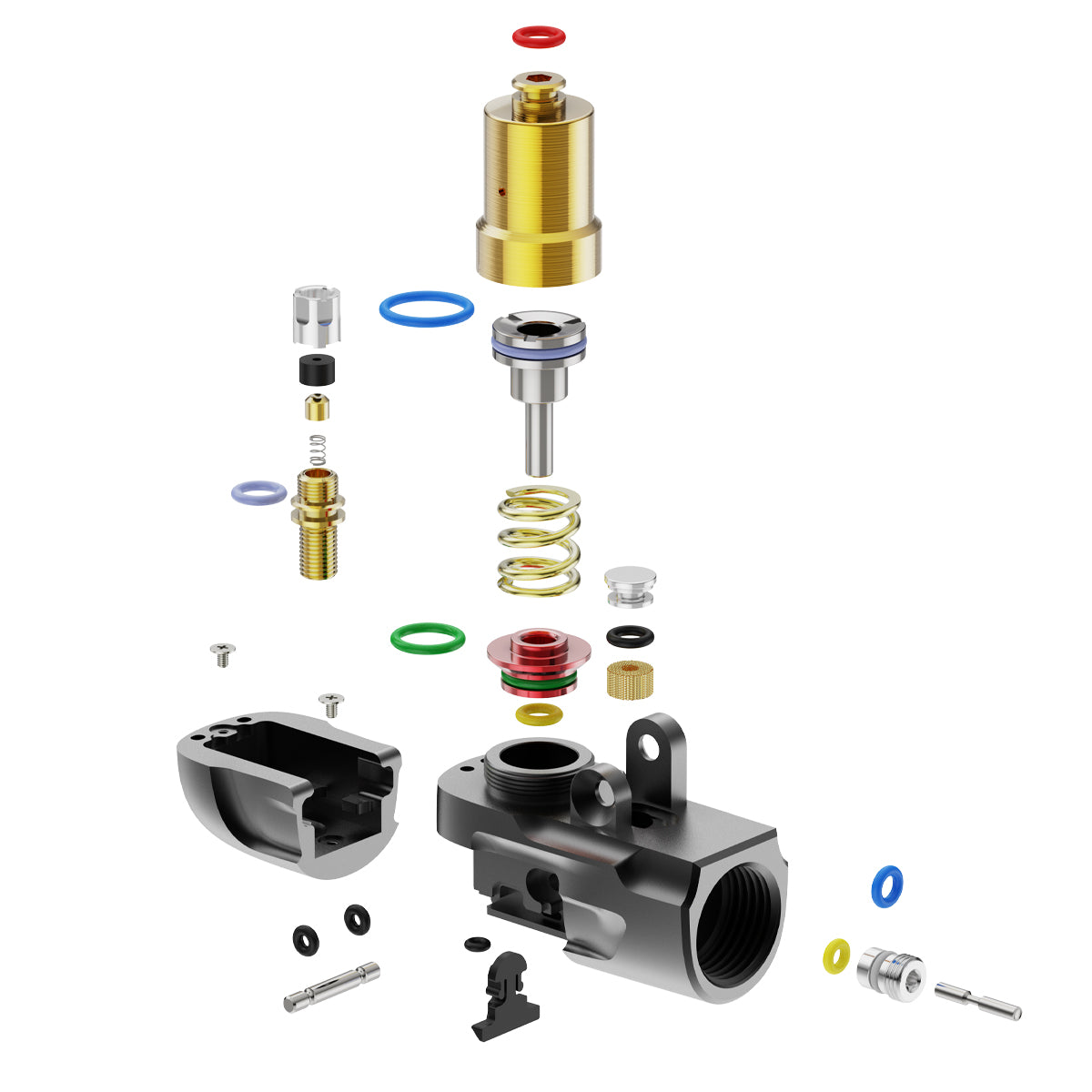 operate package. The shielded design has no button to operate, no knob to turn, and no lever to get snagged. All critical operations are protected by the Slide Lock Cover. Simply press and slide the lock cover back to engage the air supply with ease. The SLAP-2 for DSR incorporates the latest regulator technology from our proven IM Pro kit.